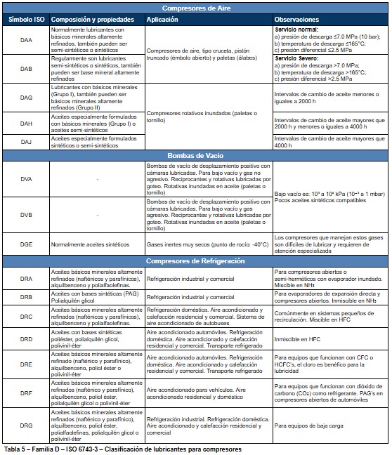 Clasificación de ISO 6743 para lubricantes líquidos (aceite) y lubricantes cohesivos (grasa)